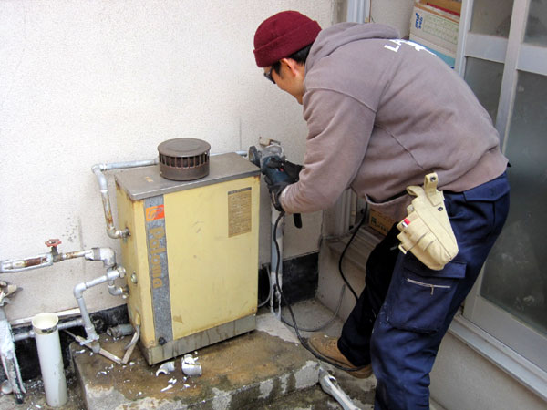 まずは古い壊れた給湯器の撤去。