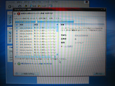本日買い取りしたパソコンからは、数百のウィルスとスパイウェアーが検出されました。