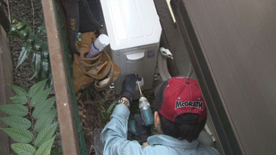 エアコン作業の翌日は網戸の張替え作業。