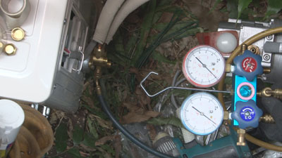 先日のエアコン作業での真空引き風景の写真をアップします。